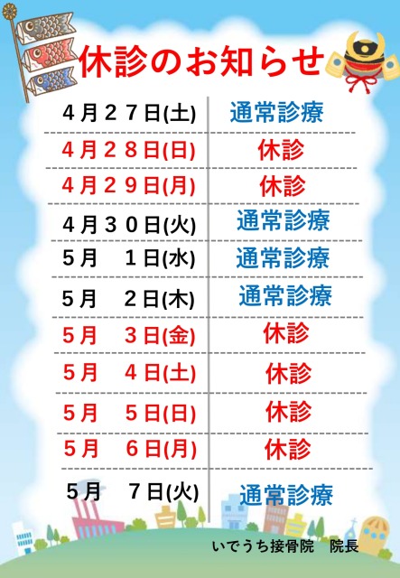 ゴールデンウィークの休診日は