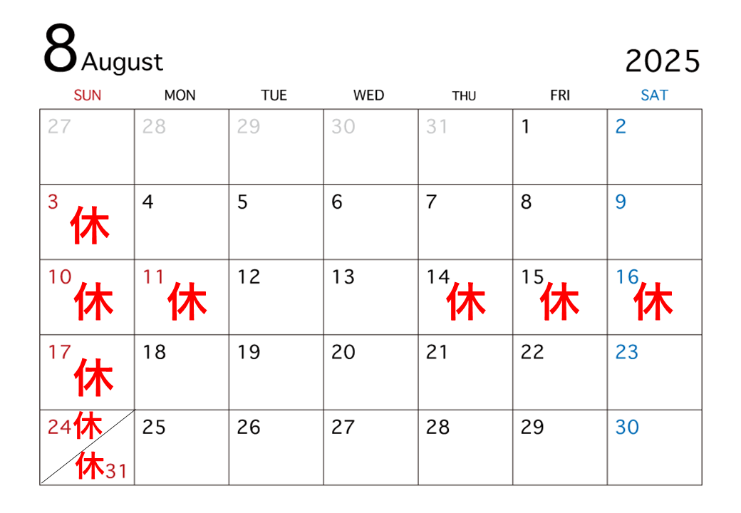 いでうち接骨院8月の休診日のお知らせです