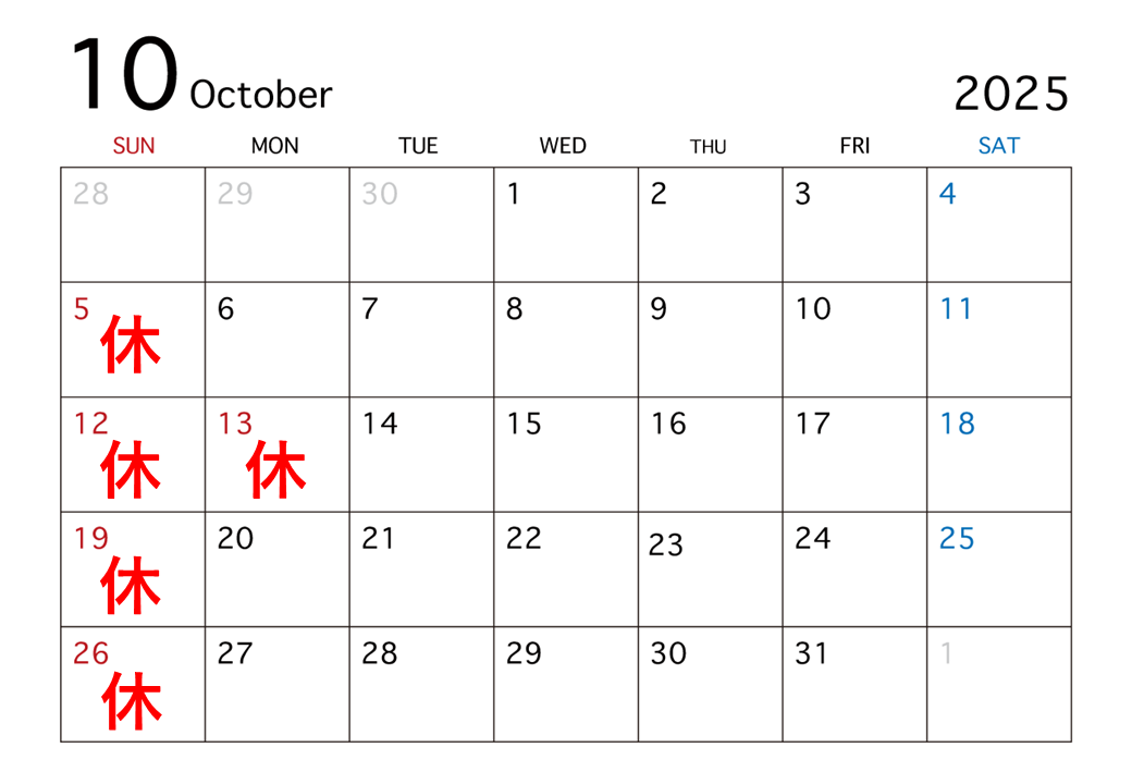 いでうち接骨院10月休診日のお知らせです
